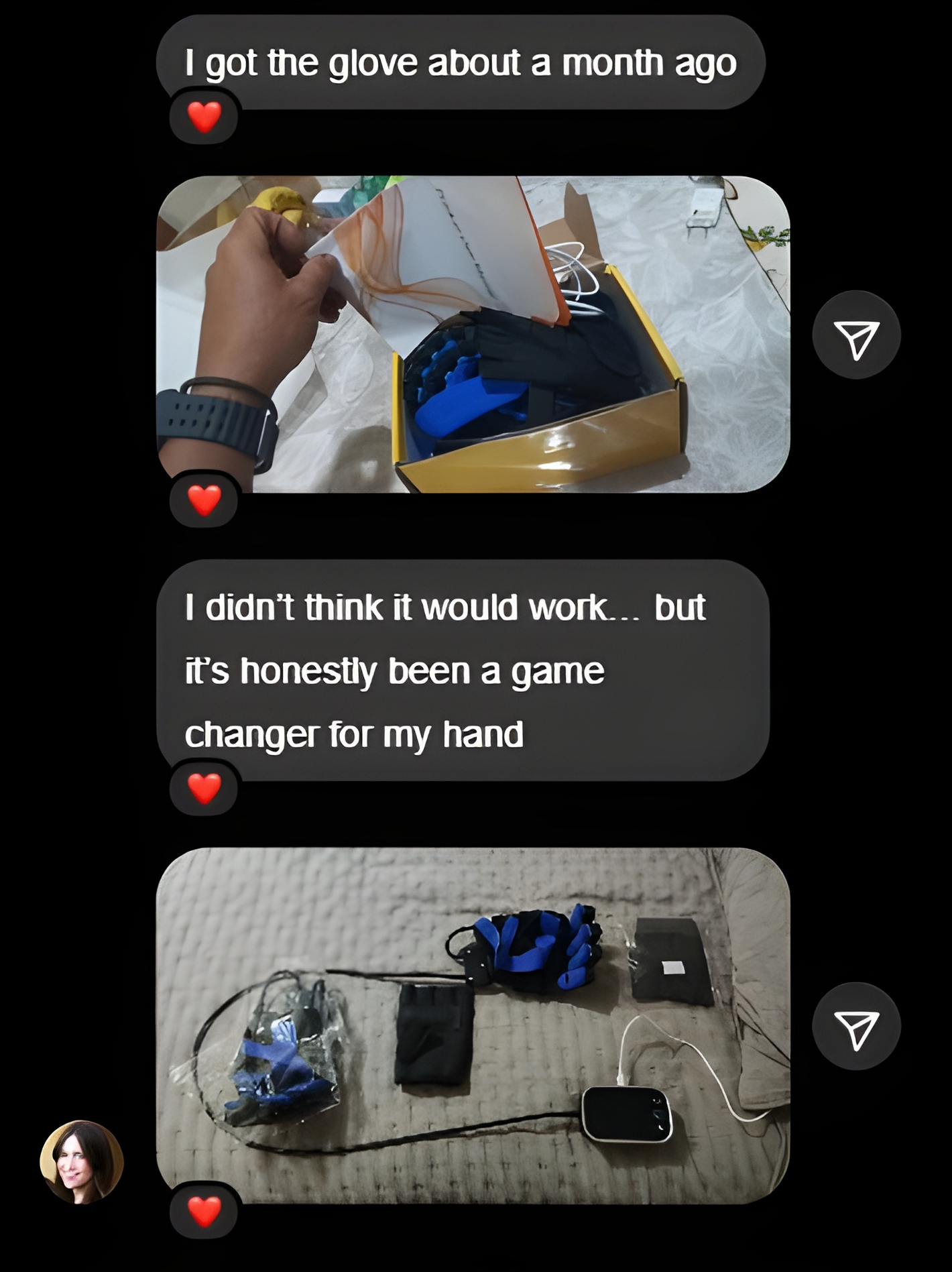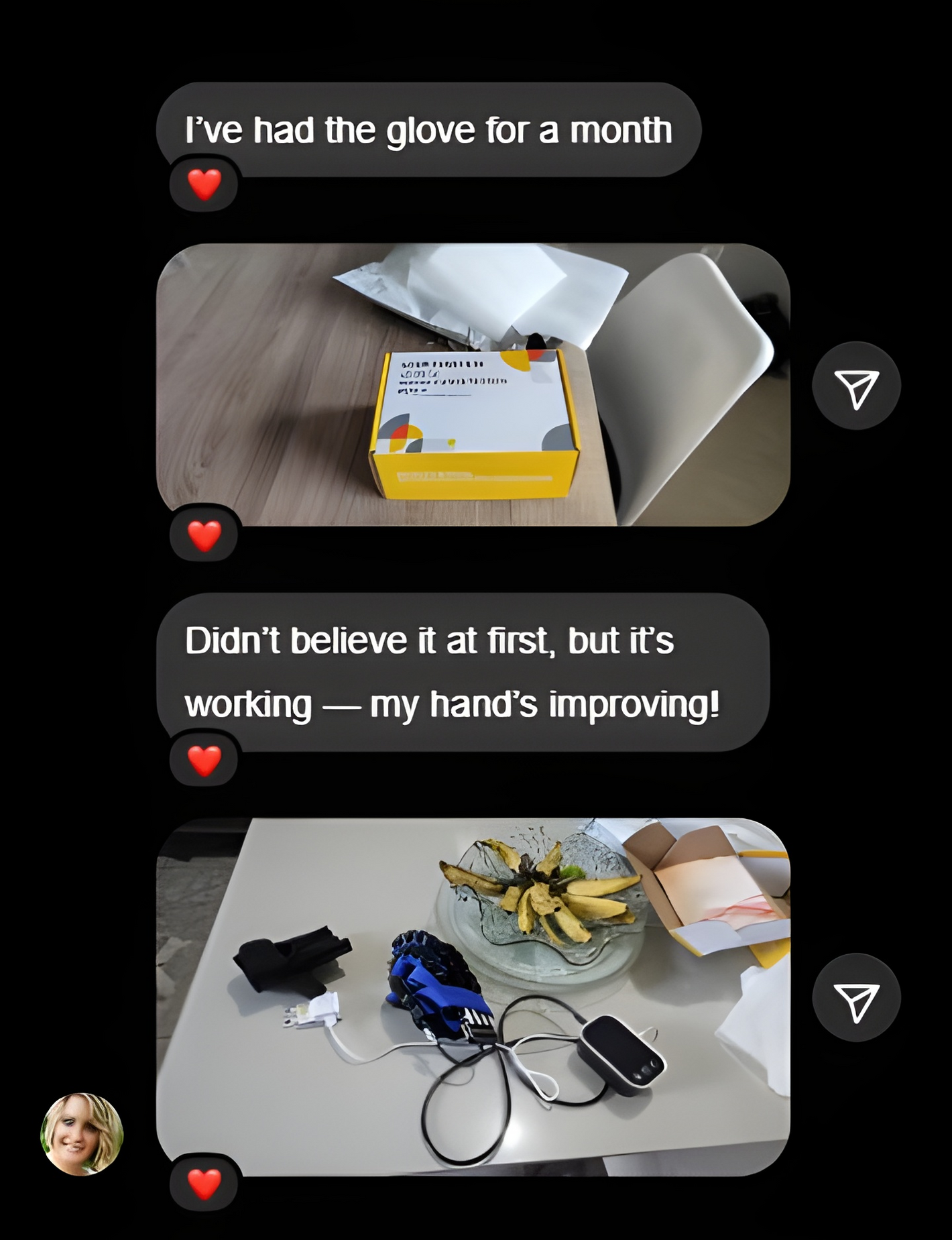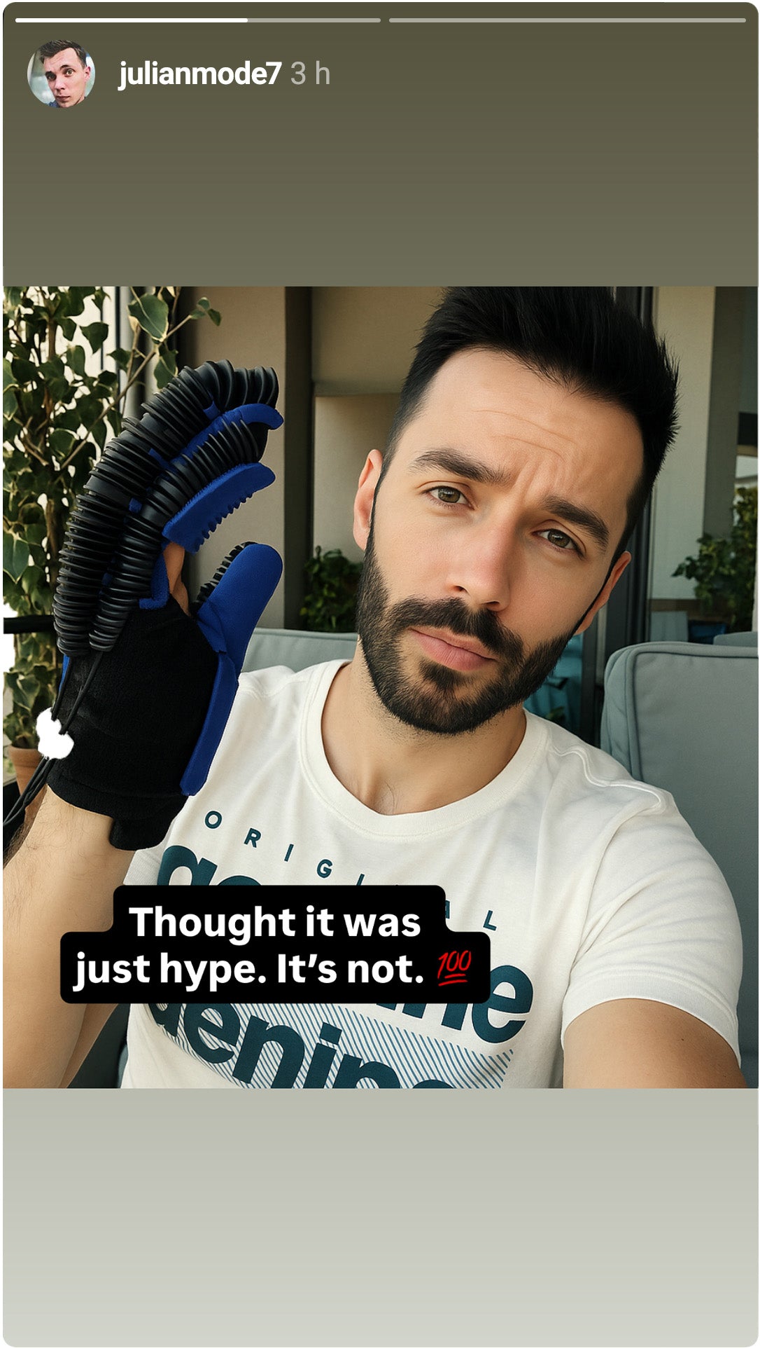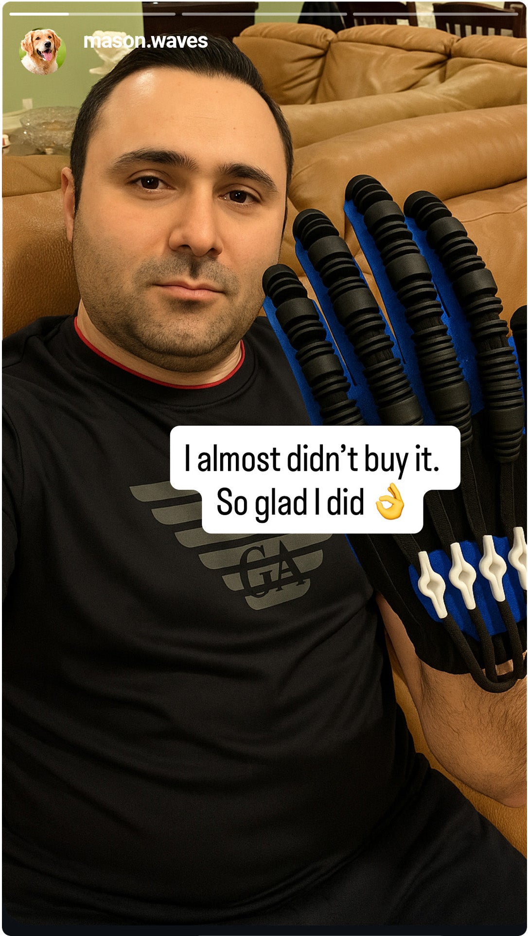 report stronger fingers — the glove’s automatic motion gives their hands a solid workout.